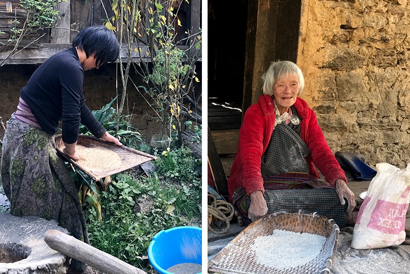 Thanks to GeoEx’s long history in Bhutan, we were able to have two of our longtime friends, Tashi and Jigme, guide us to their ancestral villages in a rarely visited region of Central Bhutan. (The five-day trekking portion of the trip took us there.) In the Takin village, we met Tashi’s grandparents, cousins, and nieces and nephews. It was clear they were so happy to have him home and were very proud of his work. Lots of smiles and hugs.