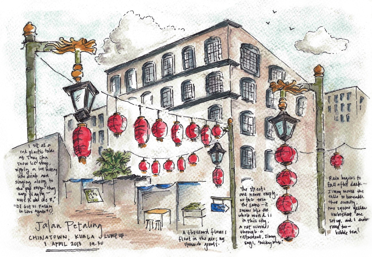 I arrive in Kuala Lumpur ready to walk as long as it takes to find a view to sketch.