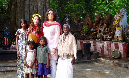 From Kolkata we headed down to Tamil Nadu, India’s southernmost state. One morning in the city of Chettinad, we came across an easily overlooked gem, an unassuming Ayyanar shrine. We leisurely followed its path through a green glade lined with extraordinary clay representations of horses and the occasional elephant (the conveyance of the Ayyanar, as he does his duty patrolling and protecting the village). The path culminated in a peaceful, sunlit shrine dedicated not just to the Ayyanar, but also to fertility, which was used regularly by local women to pray for a child. There was a serene and mystical quality to the place (my photos do not do the horses or the shrine justice). Being there was one of my favorite moments on the trip. As shown in the photo below, two sisters and their brother very sweetly traipsed along with us through the shrine, giving Sam a flower garland to wear as a crown. The tiny gentleman next to me (apparently, at 5 feet, 9 inches, I am a giant) is the shrine’s gentle caretaker who lovingly maintains the area.