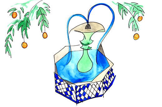 We’ve brought our sunglasses and poetry collections. We’ve also brought a couple of overlander Spaniards we found along the way. We ran into them two days in a row, while stopping for lunch on the road from Fès. The two friends—both named Juan and dressed in safari gear—have loaded their Land Cruiser with Rioja and carry it discreetly around this conservative country in a goatskin canteen.