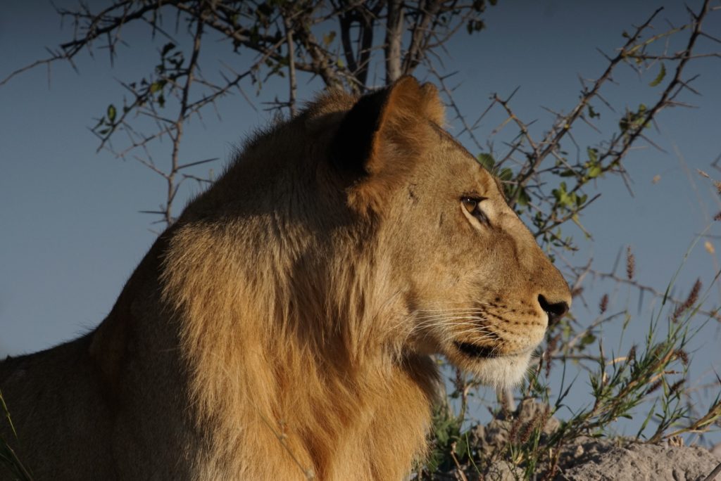 This young male lion was sitting atop a termite mound, scanning the horizon, and roaring loudly trying to locate his pride before sundown. My guide Isaac and I had spent the day exploring the Okavango Delta of Botswana. We enjoyed sitting quietly for a while, just taking in the beauty. His eyes and mane really drew us in. I wanted to capture this in a photograph, and I needed to get creative to get the image I envisioned. Issac taught me to be bold and experimental with the camera. This photo is a little dark, and I love it because it always brings me back to this sweet moment in time.