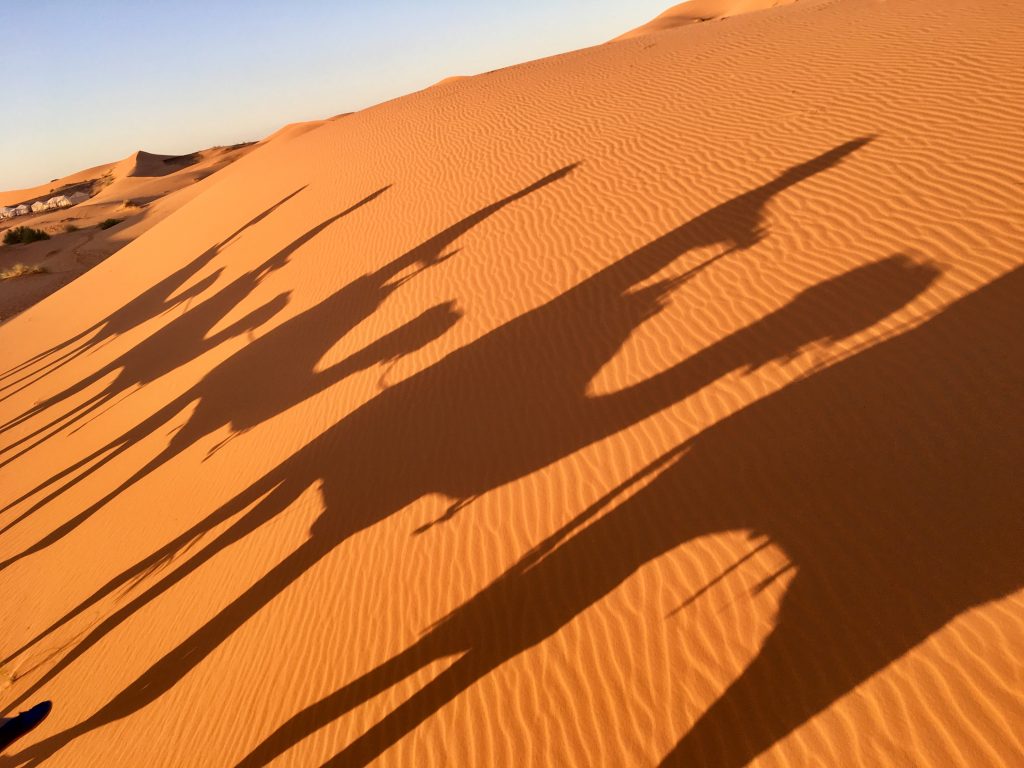 This moment was surreal. I was high in the air, riding a camel, as the sun was setting and the dunes were turning gold. The landscape was like nothing I’d ever seen. I looked back to see our shadows in the sand. It felt like we were ancient explorers wandering the desert. I kept asking myself, is this real or am I dreaming?