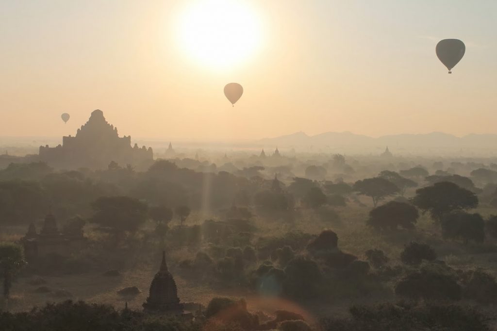 Taken during sunrise after climbing atop a large, ancient pagoda (a specific area made for climbing, of course). We biked to the area before the sun was out, and my adrenaline was pumping by the time we found the perfect spot to sit and admire the view. The hot air balloons were all on their own path, floating through the color-changing sky like ornaments. An unforgettable morning.
