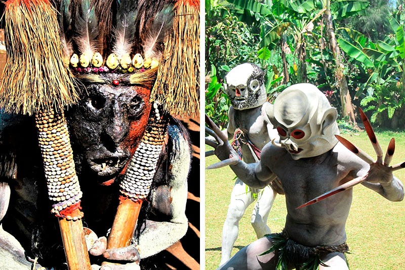 Some two centuries ago, the Asaro were shy, retiring jungle-dwellers. One day they were attacked by a much more powerful tribe and fled into the nearby Asaro River. When their assailants reached the river, they came upon figures coated in white and gray river mud. Believing they had encountered the ghost spirits of the Asaro they had killed, the aggressors fled in confused panic.