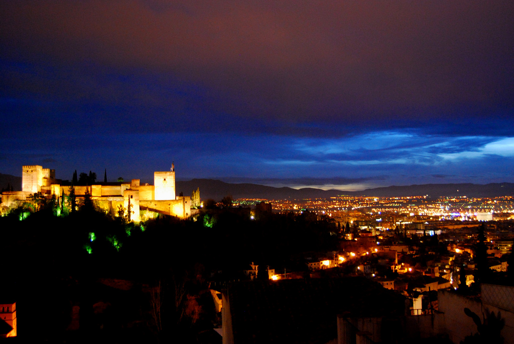 It was dark in the dusty grass where I squatted. All the light was on the opposite hillside. The Alhambra, that iconic Moorish fortress, glowed the electric yellow of streetlights and floated, majestically, in the night sky.