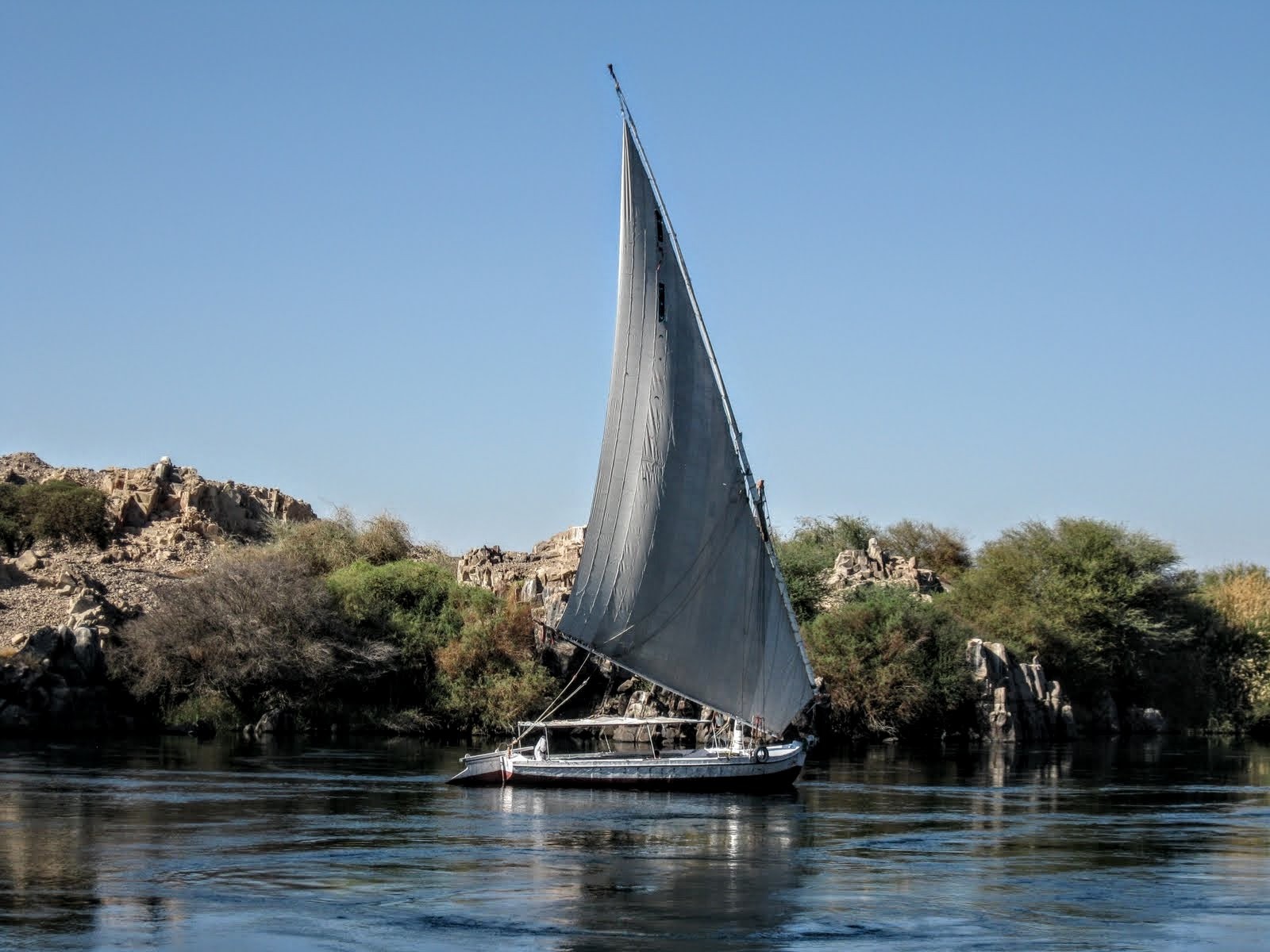 Stayed four days on a houseboat below the Aswan Dam. Every day sailed on the river in this felucca.