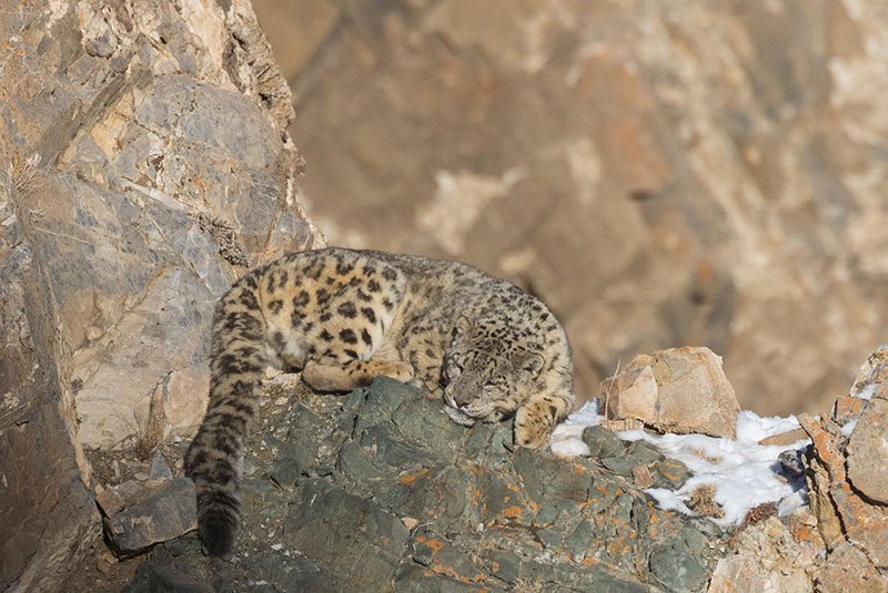 Every day is fresh new excitement as we gather information, analyze, make decisions, and execute in the area where any hillside or rock could produce a snow leopard. Guided by the local peoples’ information and following the fresh tracks of a snow leopard sometimes leads you to spot one that is 100m away. Trying to figure out where it may pop out next time is a pure adrenaline-rushing experience.