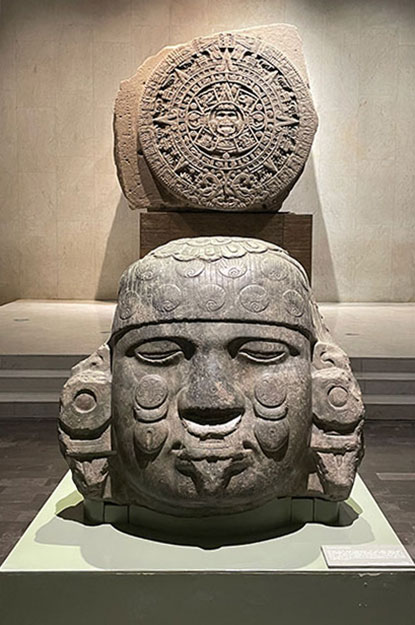 Our group of eight was welcomed at the sprawling museum entrance by the Assistant Director of the museum. Then we were led through the silent, empty halls to focus on two galleries devoted to the Aztec and the Maya. The Aztec exhibitions included iconic sights such as the famed “calendar stone,” but the real frissons for me awaited in the Maya room.