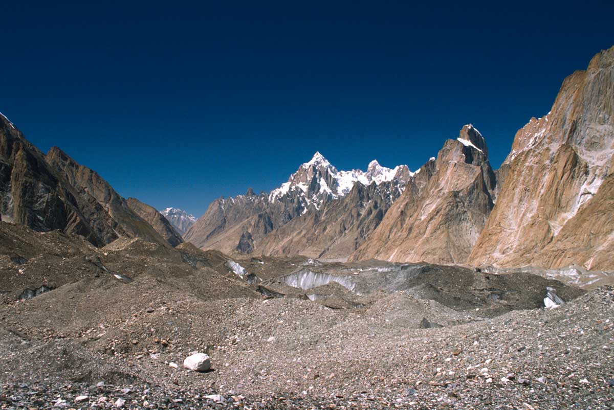 Looking down the Baltoro Glacier, which spans an impressive 39 miles in length.
