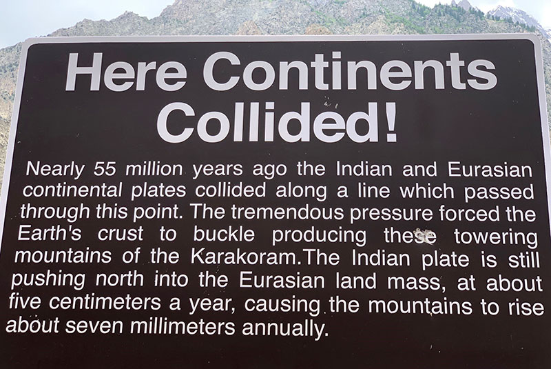 Nearly 55 million years ago the Indian and Eurasian continental plates collided. The tremendous pressure created forced the earth’s crust to buckle producing the towering Karakoram mountains. While the same process produced the Himalayas, with Mount Everest at its centerpiece, that process ceased to continue. In the Karakoram area, that process is still active causing the mountains to rise about 7mm annually. There has been controversy in mountaineering circles as to which is the highest mountain in the world, Everest or K2 in the Karakoram range. Many believe that K2 is higher than Everest making it the highest mountain in the world.