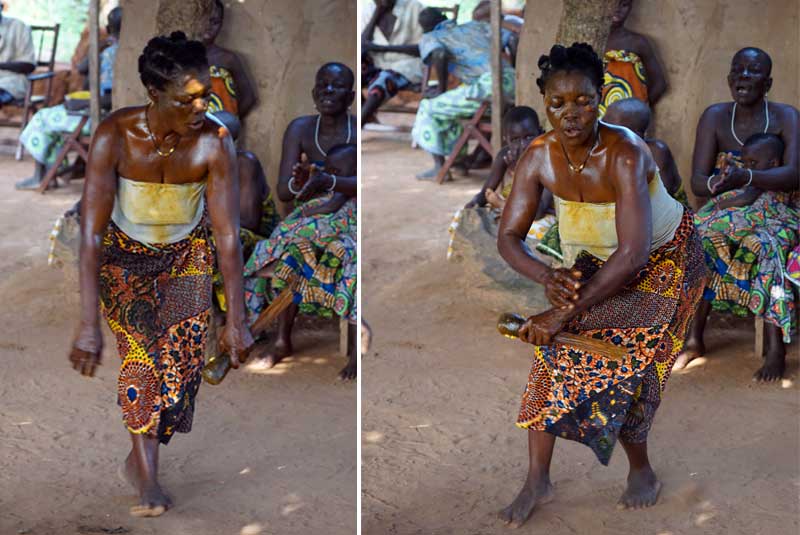 At the Gelede mask dance of the Yoruba people, men initiated in the secret ways of the voodoo appear wearing animal costumes or women’s clothing. Their dance is meant to be both satirical and educational. The spirits imitate a woman, usually in an obvious over-exaggeration of hip shaking or mock interest/embarrassment at the attention of a man. As the dance we watched progressed, locals invited us to join in the hip and shoulder dancing. The large circle of dancers and drummers continued on around us, with locals laughing at our poor attempts to match their seemingly effortless movements.