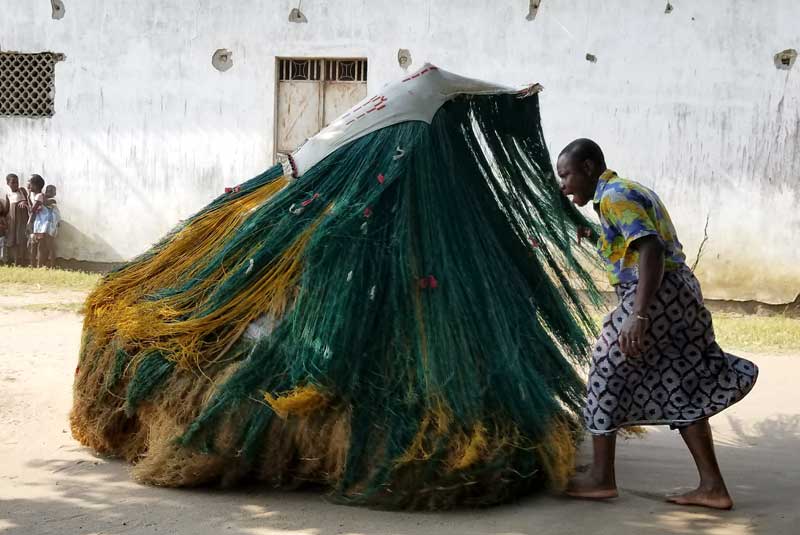 Here, during the Egungun dance, Yoruba people masquerade as their ancestors, honoring the dead and purifying the living.