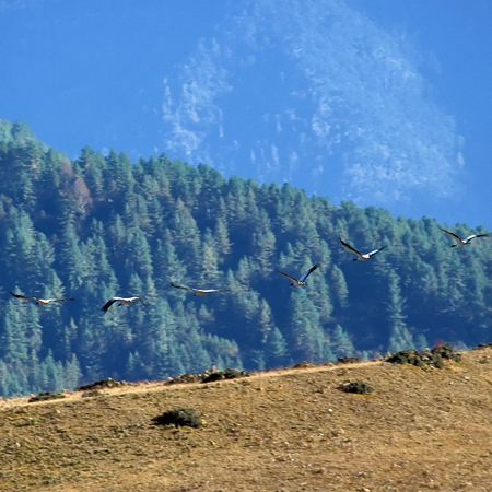 From December to February, you’ll find a pristine, private wonderland with the clearest skies of the year. Winter in the Himalaya can certainly be cold, especially at higher elevations. However, Bhutan is at about the same latitude as Florida and not as cold as many travelers expect. In the lower valleys, such as Punakha, temperatures can reach the 50s and even 60s. A winter visit to Bhutan means small crowds, spectacularly clear views of the Himalayan range, and a chance to see the endangered black-necked cranes.